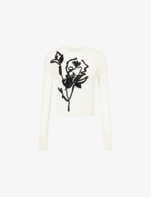 Flower-Embroidered Crewneck Wool-Blend Jumper