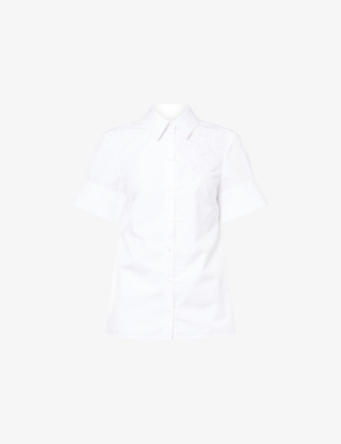 Embroidered Short-Sleeves Cotton-Poplin Shirt