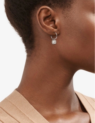Add a sparkling touch to your outfit with brilliant-cut diamonds. The styles in our selection vary from solitaire diamond studs to those dripping in jewels with yellow-, white- and rose-gold metals. Stud earrings are handy for daily accessorising - from smooth metal styles to those that glisten with precious gemstones, the compact designs will easily pair with your next ensemble. Hoops are eternally fashionable, from the small options that seem to hug your ear to larger statement-making items. The hoop-shaped styles in our range include chunky and textured with a mixture of metals, plus finer hoops for subtlety. Drop earrings create a dressier aesthetic and are ideal for wearing to parties or dinner events, especially when adorned with pretty mother of pearl or turquoise - look out for the different fastenings to keep your jewellery in place, from spring-ring clasps to butterfly closures.