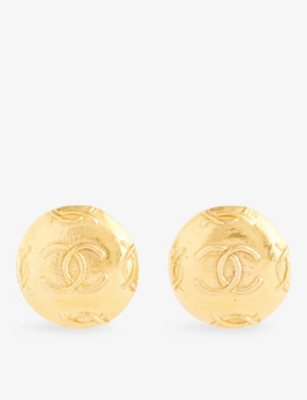 Pre-Loved Chanel CC Round Metal Gold-Plated Clip-On Earrings- Price:€780.00