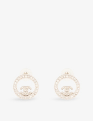 Pre-Loved Chanel Monogram Gold-Plated Metal and Cubic Zirconia Clip-on Earrings- Price:€570.00