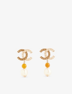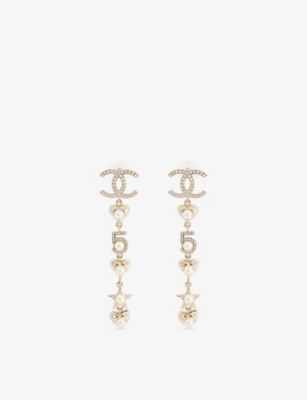 Pre-Loved Chanel Gold-Plated CC Crystal Faux Pearl Charming Winter Star Heart Drop Earrings- Price:€1,025.00