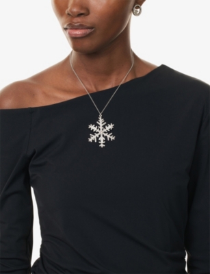 Pre-Loved Chanel Silver Plated CC Rhinestone Snowflake Pendant Necklace- Price:€1,135.00