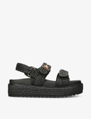 STEVE MADDEN: Millo double-strap flat raffia sandalsSTEVE MADDEN: Millo double-strap flat raffia sandals