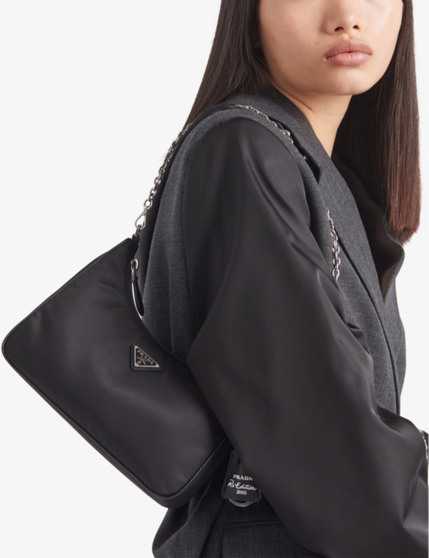 - Prada nylon and leather shoulder bag