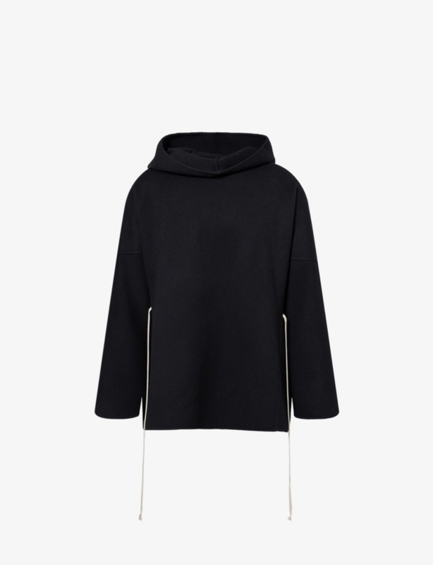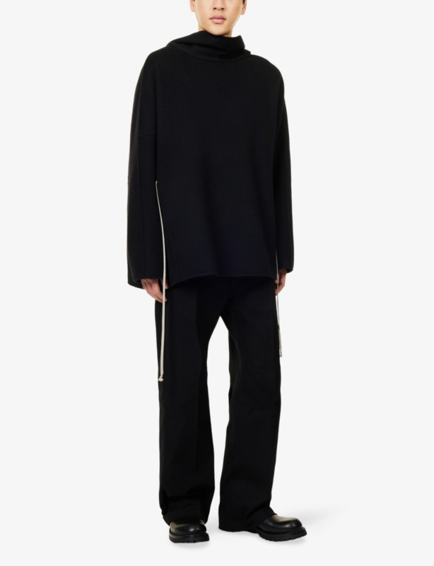 - Relaxed fit, mid-rise, drawstring elasticated waistband, slip pockets at front, split at sides, raw hem