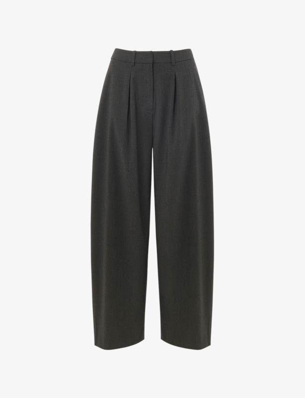 - Regular fit, high waist, belt loops, all-over pinstripes, two slip pockets to the sides, slit to the front hem, two welt pockets to the back