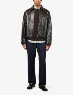 BOTTEGA VENETA: Woven-Collar Patch-Pocket Leather JacketBOTTEGA VENETA: Woven-Collar Patch-Pocket Leather Jacket