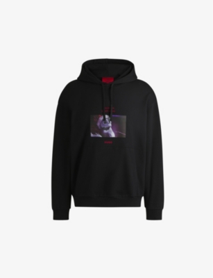 Drawstring-hood graphic-print cotton-jersey hoody