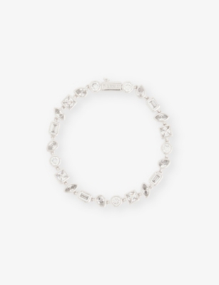 Tennis 18ct White Gold-Plated Stainless Steel, Brass And Pavé-Stone Bracelet- Price:€187.00