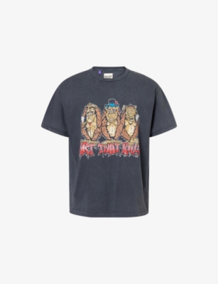 In our collection of printed T-shirts for men, discover bold illustrations, statement logos and classic fits to freshen up your basics wardrobe. From photography and animations to familiar brand motifs on the chests, you'll find an option to suit you here. Graphic-print tees pair well with turned-up chinos and trainers for weekend days - or why not smarten yours up with a fitted jacket and tailored trousers? Â