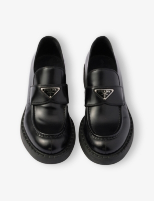 PRADA: Logo-plaque brushed leather loafersPRADA: Logo-plaque brushed leather loafers