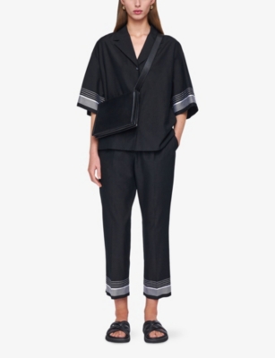 For relaxed daily styling, you can't go far wrong with a high-rise cotton pair. Matched with a tucked-in tee or light blouse, they'll prove a versatile and flattering choice for most occasions. You'll spot several styles in our selection, sporting details like elasticated waistbands, self-tie cuffs and silver-toned hardware.
