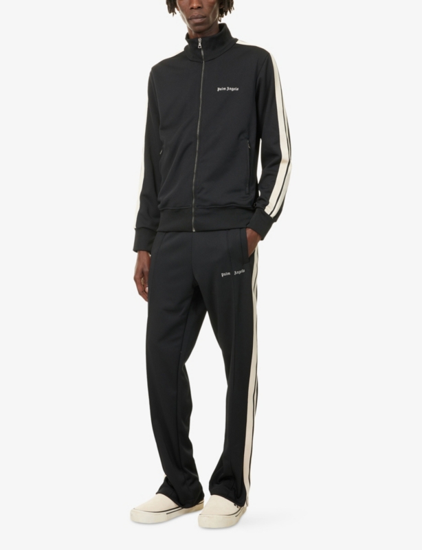 - Regular fit, high neck, striped panels at long sleeves, brand embroidery and two zip pockets at front, ribbed trims