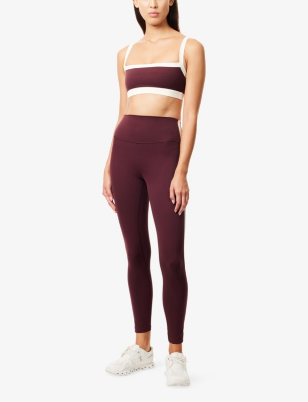 - Slim fit, scoop neckline, sleeveless, brand print at hem front, pleated flared hem