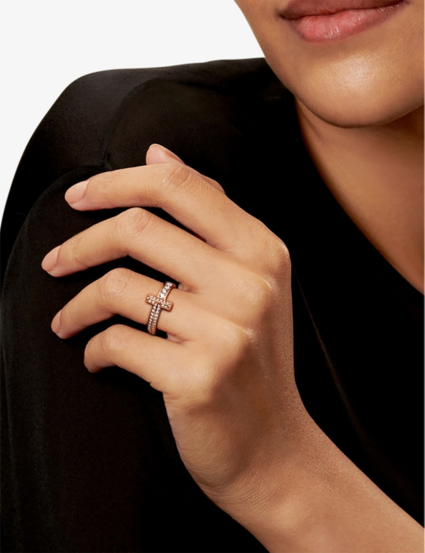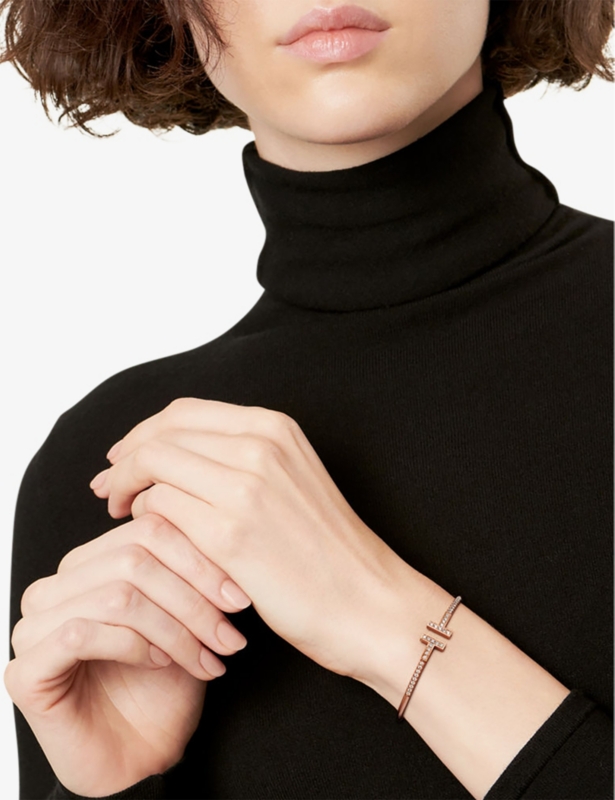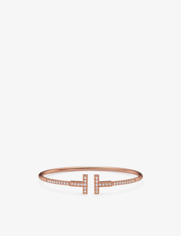 Tiffany T Pavé Wire 18ct rose-gold and 0.48ct brilliant-cut diamond bracelet