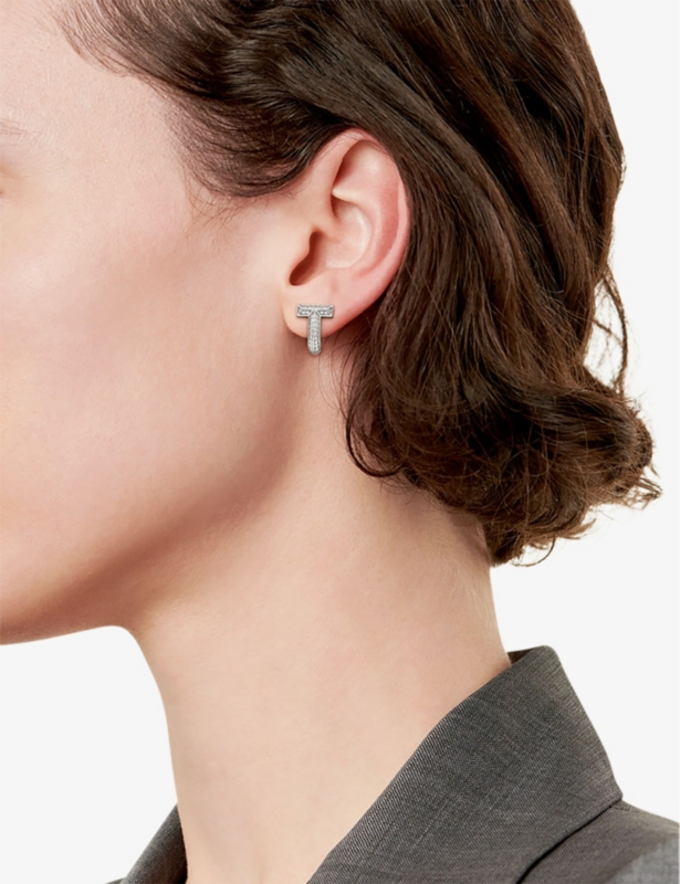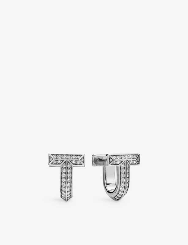 Tiffany T T1 Huggie 18ct white-gold and 0.28ct brilliant-cut diamond earrings