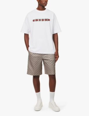 Wear a Gucci cotton T-shirt and a set of linen shorts for a lightweight feel on balmy days. In chillier weather, slip one of the label's silky satin bombers over your Gucci logo top for an irresistibly smooth feel. Just add a spritz of Gucci cologne to complete the look.