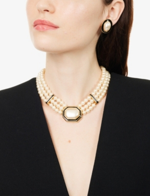 With Love Darling 14ct yellow gold-plated remelted brass, pearl and glass necklace- Price:¥17,900