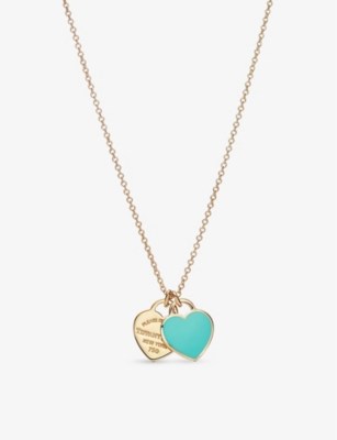 Return to Tiffany Double Heart Tag extra-large 18ct yellow-gold and enamel pendant necklace- Price:¥288,000