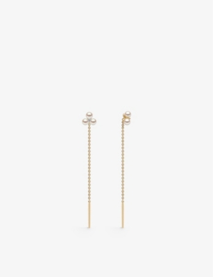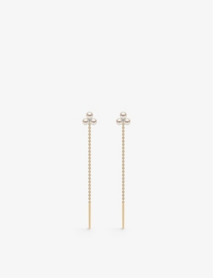 Trend 18ct yellow-gold, 0.04ct brilliant-cut diamond and freshwater pearl threader earrings- Price:¥137,000