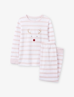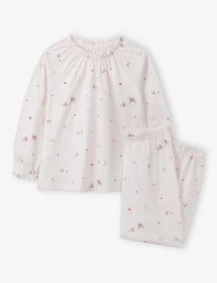 Oh Deer long-sleeve embroidered velour organic cotton-blend pyjamas 0-24 months- Price:Â¥4,600