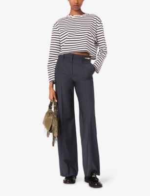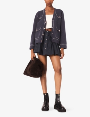Maje's clothing successfully strikes a balance between vintage glamour and non-conformity. It's all about the little details - balloon sleeves alongside plunging v-necklines, cropped hems on high-waisted trousers and mini dresses with large flap pockets. The brand's recognisable 'M' monogram appears frequently throughout the range; see if you can spot gingham prints and woven tweeds, too. The label achieves its innovative aesthetic with high-quality fabrics that are both appealing and practical - think airy organic cotton, supple silk blends and romantic embroidered lace.Â