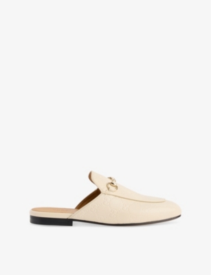 Searching for a little glitz and glamour? Shop options adorned with gems, faux pearls and crystals. You'll find models constructed with pointed toes, flared heels and transparent PVC panels. If you're after a quick and impactful style solution, our designer slip-ons include a variety of flat items complete with open toes, logo detailing and shearling linings, ideal for when the temperature drops.