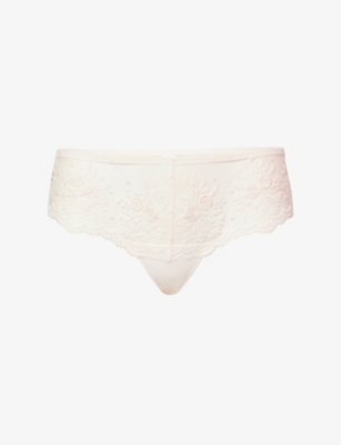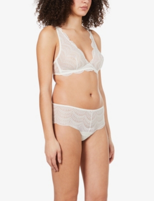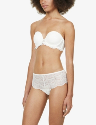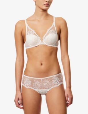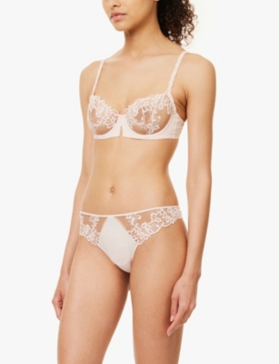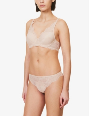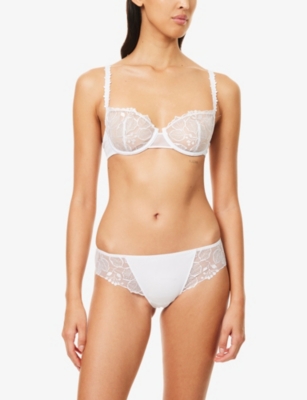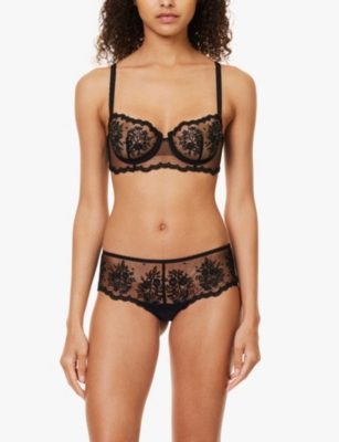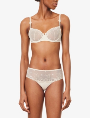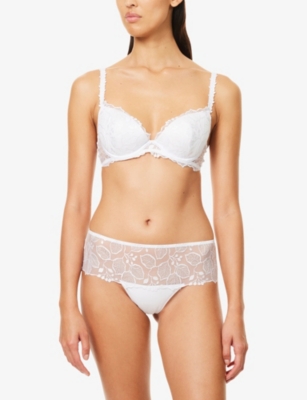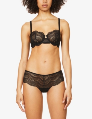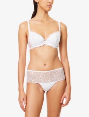What makes Simone Péréle lingerie so desirable? Haute couture quality, expert craftsmanship and a commitment to artisan production. The brand works directly with Calais lace-workers to produce the scalloped trim you'll spot throughout its signature pieces. You'll find the same attention to detail and uplifting support across the size range, from A cup to E and S to XL. From the everyday luxury of jersey and stretch-blend basics to more dramatic satin plunge brassieres and thongs, our selection will make you feel as alluring as you look.