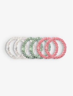 At the other end of the scale, our twee items come adorned with gems, logo plaques and dangling motifs - they're best styled as the focal point of your outfit. The reigning queen of The 90s hair care world, our silk hair scrunchies are a key throwback with subtle modern updates. Discover iterations with abstract patterns and crinkled effects alongside plain styles that will take you to your spin class, lunch date and beyond.