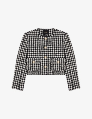Removable-Collar Patch-Pocket Short Tweed Jacket