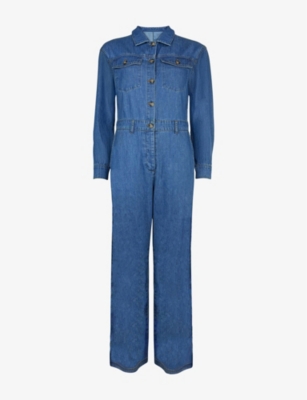 Long-Sleeve Button-Up Denim Jumpsuit- Discount price:Â¥7,200