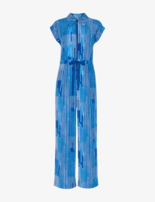 Angled stripe-print short-sleeve woven jumpsuit- Discount price:Â¥7,600