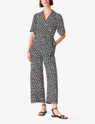 Abstract Triangle-Print Wide-Leg Woven Jumpsuit- Discount price:Â¥14,900