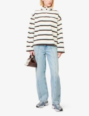 For something on the bolder side, shop statement styles in bright hues with eye-catching intarsia knitting, intricate embroideries and cut-out detailing. Looking for a versatile, wear-anywhere piece? Discover our black items with zipped necklines, ruffled edges and pared-back minimal finishes. Our women's cotton jumpers are a practical layer when it comes to trans-seasonal dressing, thanks to their breathability and lightweight composition. Crew-neck or cold-shoulder, striped or sleeveless, our cotton options work with everything from casual denim to skirts and workwear staples.