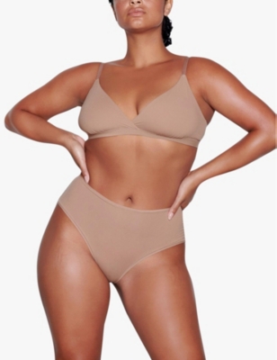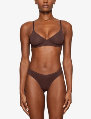 Discover women's bras crafted from premium materials and take your pick from stretchy jersey and cotton blends with panels of opulent lace and mesh. Soft bralettes offer a smooth texture under tees and seamless styles in nude tones practically disappear beneath brilliant white shirts and lighter fabrics. Searching for undergarments to wear with your cocktail dress? Choose bandeaus for invisible support with off-the-shoulder dresses or slip on a low-backed piece to accentuate cutouts. If you're looking for flattering shaping, wired designs combine sculpting with comfort, while balconettes provide extra lift.