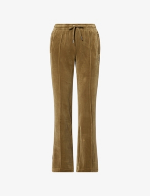 Tina Rhinestone-Logo Velour Jogging Bottoms