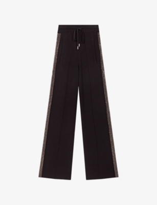 Drawstring-waistband rhinestone-embellishment straight-leg mid-rise knitted trousers- Price:Â¥52,700