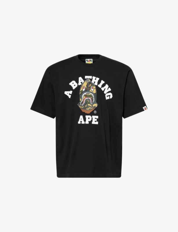 - Regula fit, ribbed crewneck, short sleeves, ape head and brand print at front, brand and text print at back
