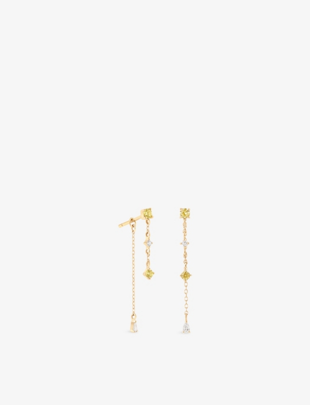 Chain Drop 14ct Yellow-Gold, Lab-Grown Diamond And Yellow Sapphire Drop Earrings