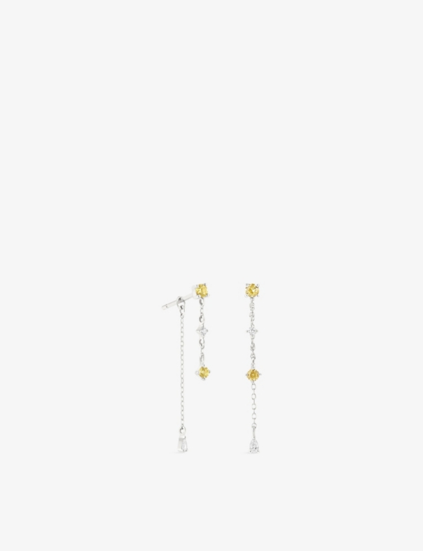 Chain Drop 14ct White-Gold, Lab-Grown Diamond And Yellow Sapphire Drop Earrings