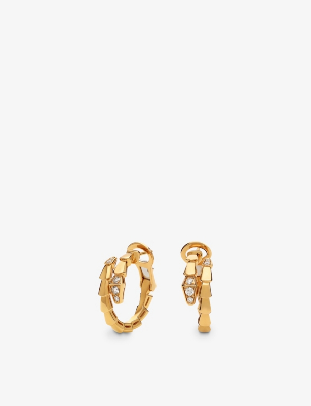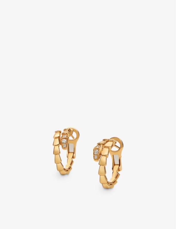 - Bvlgari 18ct rose-gold and 0.18ct brilliant-cut diamond hoop earrings
