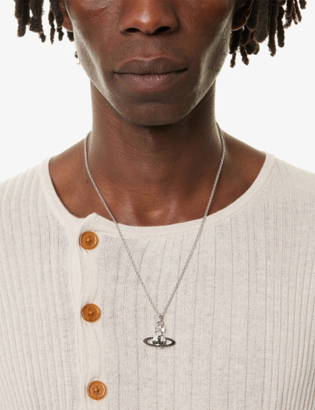 Man. New Petite Orb Platinum-Plated Brass and Crystal Pendant Necklace