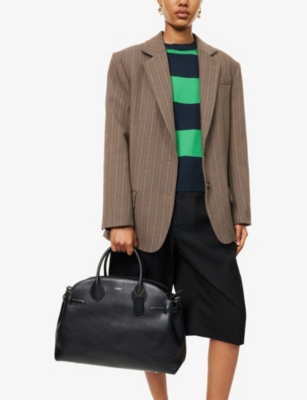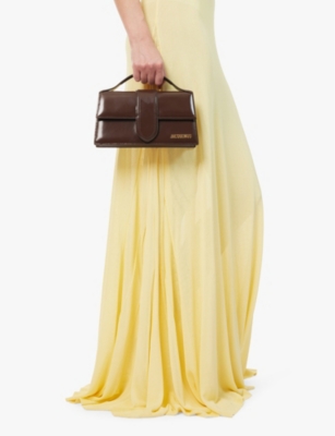 Whether you're swinging it at your side in a devil-may-care fashion or enjoying the convenience of an easy grip for stowing it on a table or under your desk, you'll find what you're looking for in our collection of leather top-handle bags. These deliciously varied options range from sculpturally structured shapes to soft and supple totes. For a strong impact that will radiate against dark clothing, choose from bright colours like lemon yellow or shocking turquoise. Restrained and traditional hues from warm chestnut to shiny black patent have a versatile and long-lasting charm that will take you from boardroom to party.