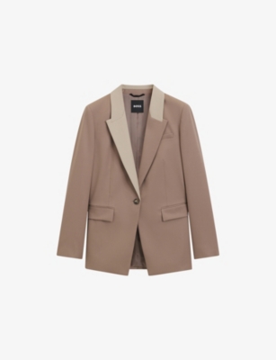 Colour-Block Lapel Single-Breasted Virgin-Wool Blazer- Discount price:₩545,000