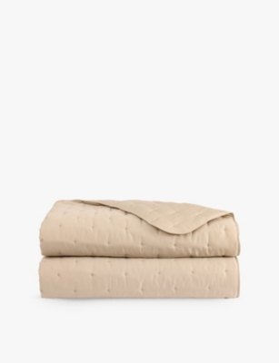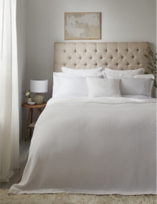 In our wide range of bedspreads, we have options such as padded cotton quilts that have been meticulously hand-finished with contrast trims and delicate stitching. Discover sateen bed covers with a 300-thread count for optimum comfort, as well as quilted counterpanes crafted in lustrous silk blends. If you prefer a lighter covering, opt for mid-weight styles to keep you warm when it's time to sleep.
