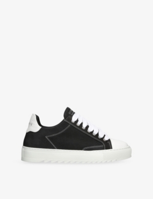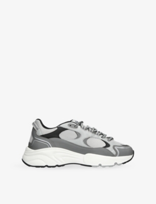 Logo-embossed mesh and suede low-top trainers