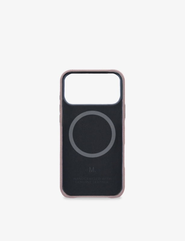 - Grained texture, shockproof casing, microfibre lining, speaker portholes, button access with Magsafe compatibility, logo at back