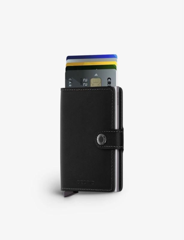 - Matte leather billfold style case, holds; four embossed or six flat cards, business cards, banknotes and receipts, folded design