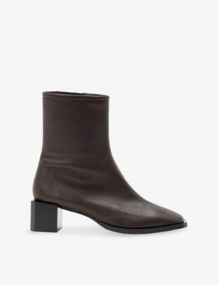 Amp up your footwear with AllSaints women's block-heel boots. Select pieces with square toes and curved heels - and look out for subtle finishes, such as logo prints wrapped around the sole. For a military-style design, choose heeled combat boots in a high cut above the ankle. Going out? Pair your boots with a dress in a contrasting delicate fabric.